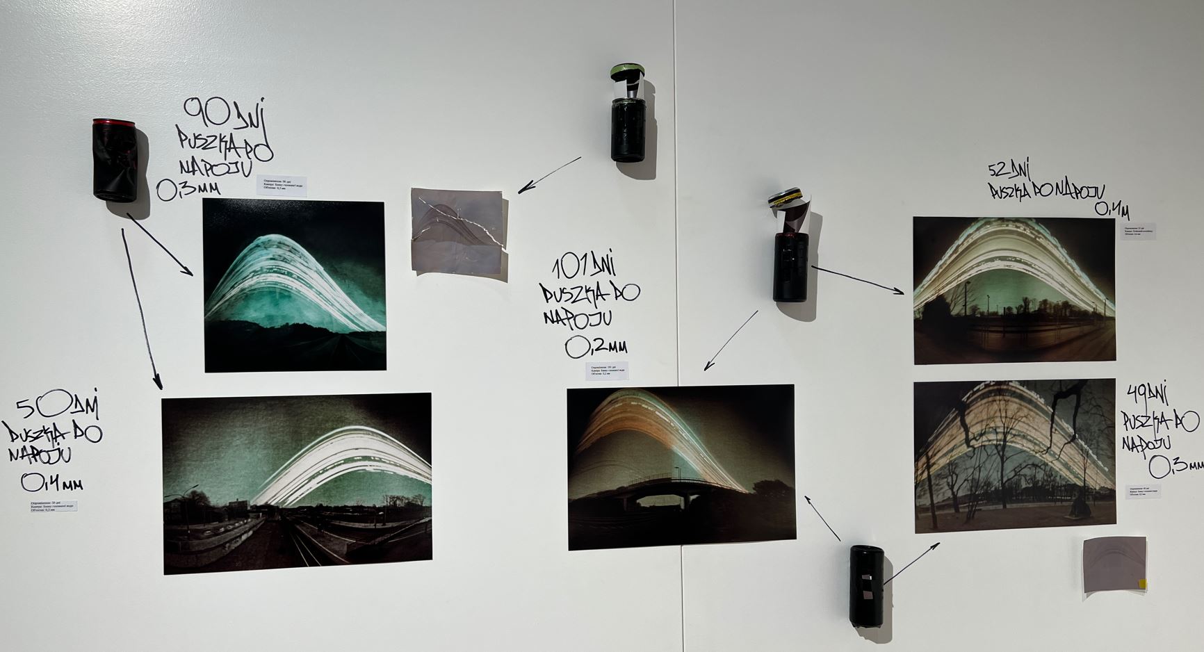Zdjęcia prezentowane na wystawie robią niesamowite wrażenie. Pewnie dlatego, że zostały wykonane metodą otworkową w dwóch jej odmianach. Pierwsza to Solarigrafia, która jest swoistym powrotem do korzeni fotografii. Solarigrafisci budują własnoręcznie aparaty otworkowe wyposażone w materiał światłoczuły i następnie montują je w danym miejscu. Taki aparat może „wisieć” dzień, ale może też i 8 lat. Przy tak ekstremalnym czasie naświetlania, oprócz krajobrazu, rejestrowany jest ślad pozostawiony przez słońce każdego dnia. Ciekawostką tej metody jest to, że nie potrzeba chemii fotograficznej do wywołania negatywu.