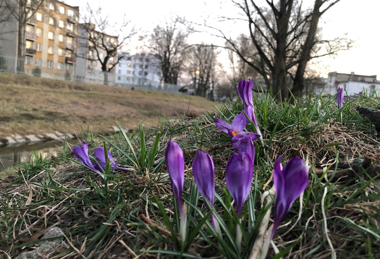 Mamy już wiosnę, co zwiastują także fioletowe, żółte i białe krokusy, które rozkwitły na brzegu rzeki Srebrnej od strony ul. Bulwarnej...