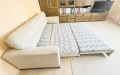 Wygodna, rozkładana dwuosobowa sofa w kolorze beżowym (melanż), z pojemnikiem na pościel. Mebel jest używany, ale nadal w b. dobrym stanie. Wymiary: 185 x87, powierzchnia do spania: 145x195. Może stanowić praktyczne rozwiązanie do salonu lub sypialni. Odbiór własny, parter