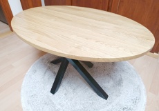 Unikalny stolik kawowy loft z owalnym blatem z litego dębu oraz stalowymi nogami typu pajak. Ręcznie wykonany solidny i ponadczasowy mebel który...