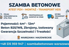 Oferujemy wysokiej jakości szamba betonowe z transportem i montażem na terenie Mazowsza.